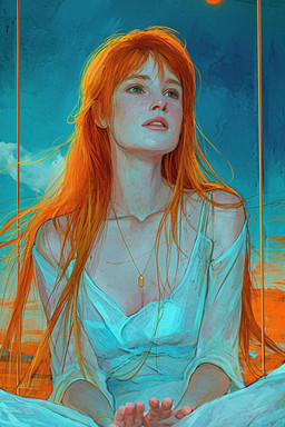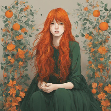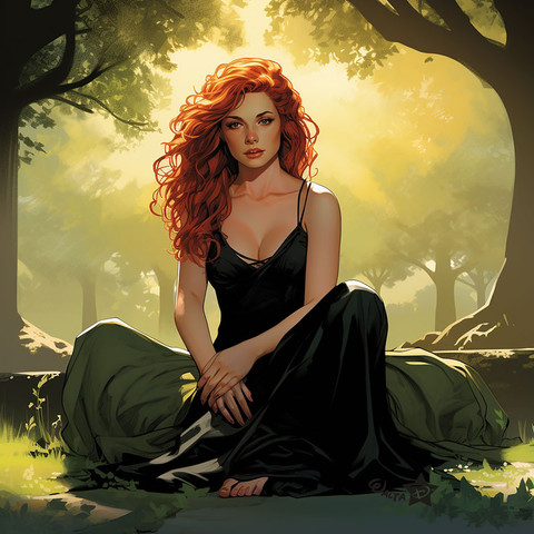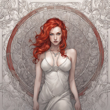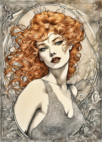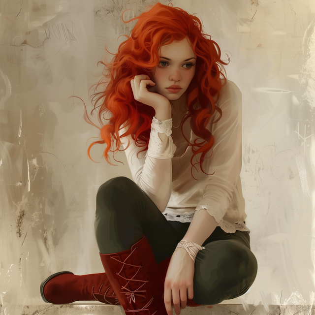 #architectural #bridgette #character #circle #clean #composition #contemporary #contrast #digital #elegant #freckles #graphic #illustration #linework #lithograph #minimal #portrait #redhair #seated #softlight #stylized