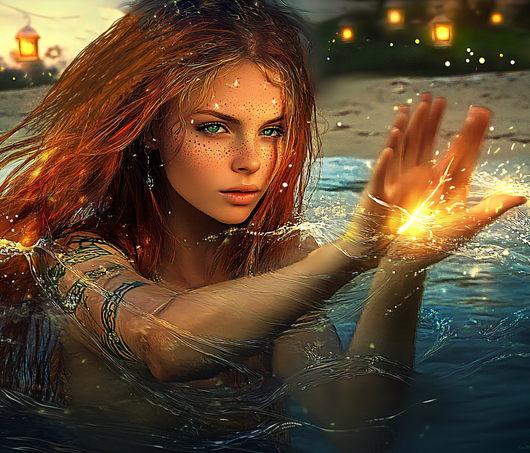 #aether #bridgette #cinematic #combustion #elemental #emerald #energy #flame #glow #golden #ignition #light #magic #night #ocean #plasma #radiance #tide #water #fire