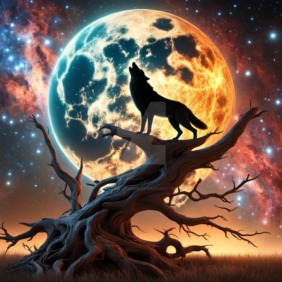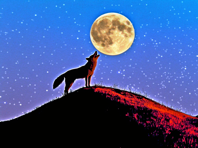 #abstract #coyote #dog #dreamscape #howling #hunting #landscape #moon #pack #wolf