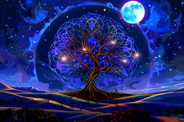 #digitalart #digitalpainting #surreal #balance #celestial #cosmic #dreamlike #fantasy #moon #mystical #mythic #nature #nebula #night #orion #pattern #sacredgeometry #silhouette #stars #stillness #symbolic #tree #universe