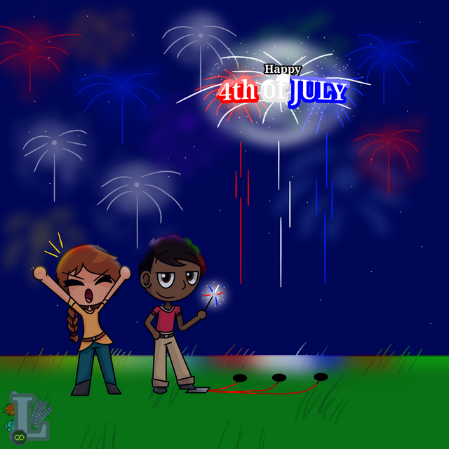 What's the best way to celebrate the 4th of July other than setting off massive amounts of explosives. Well, that appears to be Sammy's exact plan for the day. Of course, Marcus is totally on board with it, but Synthia is just waiting for an accident to happen. Still, that won't stop these two from their plans, not by a long shot.A drawing for the 4th of July I just made. Right now, I'm just watching the explosions cause they look cool. Not much more to add