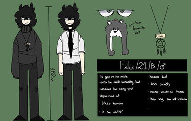 A reference sheet that isn't for one of my main ocs? How shocking! Anyways, this is Helix, the go-to persona of mine. I expanded on his lore quite a bit, so there's going to be changes that I'm too lazy to write aboutAnyways, have a good day, fellas: D