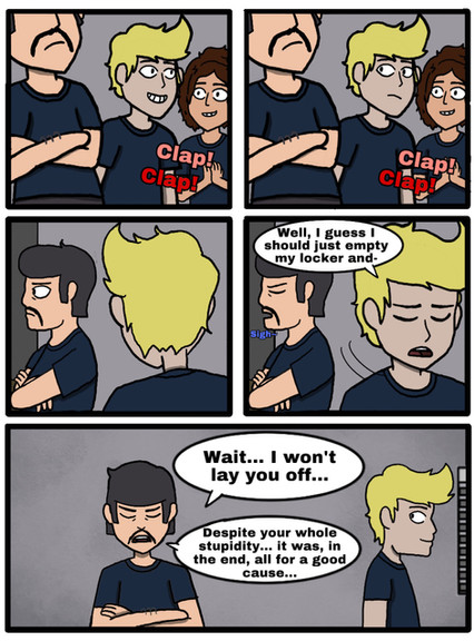 Synthia’s been questioning just how orderly things things are on Marcus's side of things. Turns out, despite what wacky hijinks he might find himself in at times, Sammy can always make sure that things keep going as planned... most times, at leastJust a little drawing I made for funnies. In case you're wondering, Marcus's real name is actually James, and Sammy is really the only one who calls him by his real name.