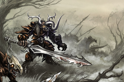 They look like Beast of Chaos from Warhammer to me. I like it; I sense a new idea for a mask...