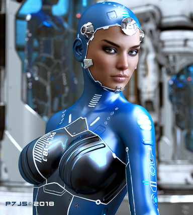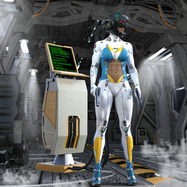 Very sexy busty cyborg babe and love the story this picture is telling, perhaps she knew another cyborg with the same face masks on the table. Perfect lighting for a sci-fi environment and outfit is awesome! Would love to see you try an idea I have for her Would involve giving her some doubles