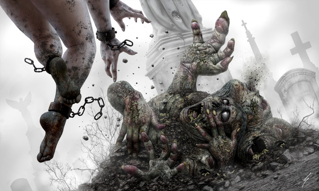 It looks so real. Fantastic piece of art, it captures the horror aspect really well.
