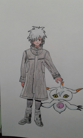 i will no longer call her Fedora.this was an interesting attempt of managing the blacks and whites. i later learn to use the black prismacolor pencil at the darker areas. the sword turned out fantastic thought