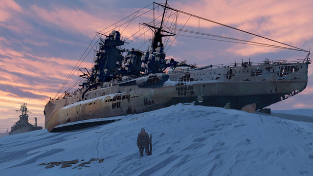 #boat #clouds #ice #moon #navire #noai #rock #snow #snowmobile #army #conceptart #digitalpainting #environment #landscape #mountains #photomanipulation #scenery #foggylandscape