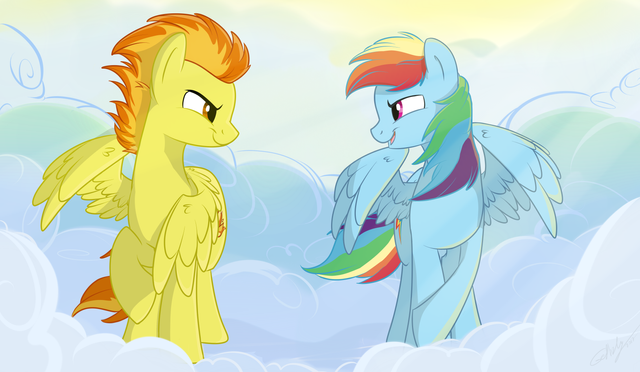If there was dialogue, spitfire will be like:"Dash! What are you doing?! She's stealing your husbando! Go get him!"