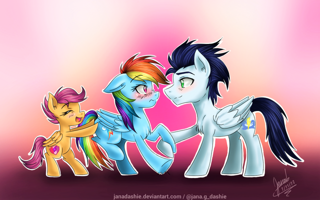 Ahhhhhhh *dies* this is so cute senpai oml Soarin is adorable , so is dash, and scootaloo *^*