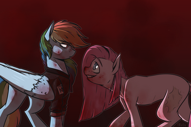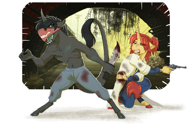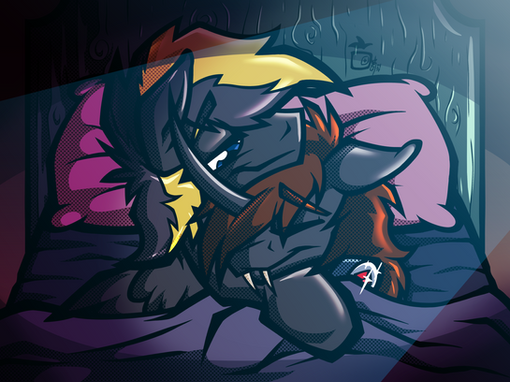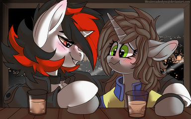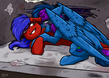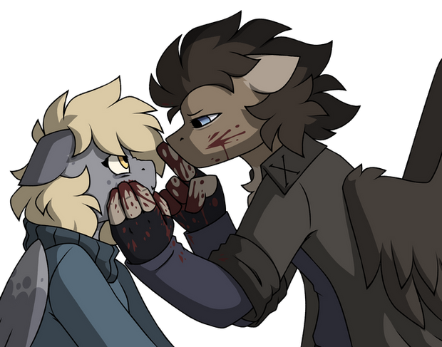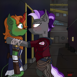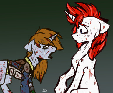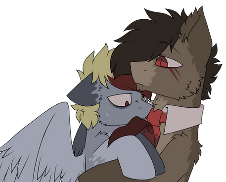"what in the fuck is wrong with me!" I thought to myself as I braced myself "I like mares! yet why does HE make me feel this way." I blushed deeply and shook my head "I am yours RedEye" I couldn't believe what I was saying every fiber of my being revolted yet my heart fluttered soon our lips met.