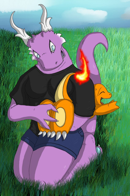 If you tought Kaori learned immediately how to ride a dragon as soon as Solmer was of the right size.. think again! XDI have no experience into riding horses, I only climbed on a bike for a few times, but they always told me that climbing on one without a saddle is very difficult if you don't know exactly what to do or else the result will be pretty much what I showed you. It will take a while for Kaori to figure out how to ride properly without falling.