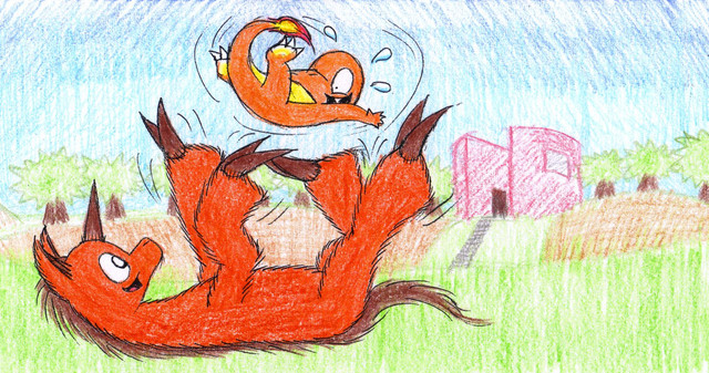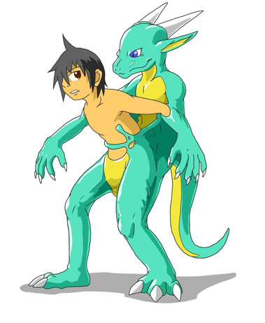 Well... trying to give Solmer an awkward pose revealed to be very hard and I failed as you noticed... -_-; Anyway, Solmer is supposed to have partially webbed feet and hook-like claws because of his nature, I falied to make them too... Also, the wrost thing here are Kaori's feet! THE HORROR!!!