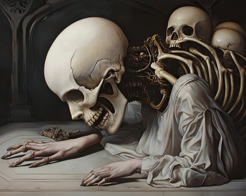 #bones #carcass #ceremony #corpse #creepy #dark #dismal #disturbing #gloomy #grim #grisly #horror #macabre #morbid #obscure #occult #ritual #scary #secretsociety #skeleton #conceiled #aiart