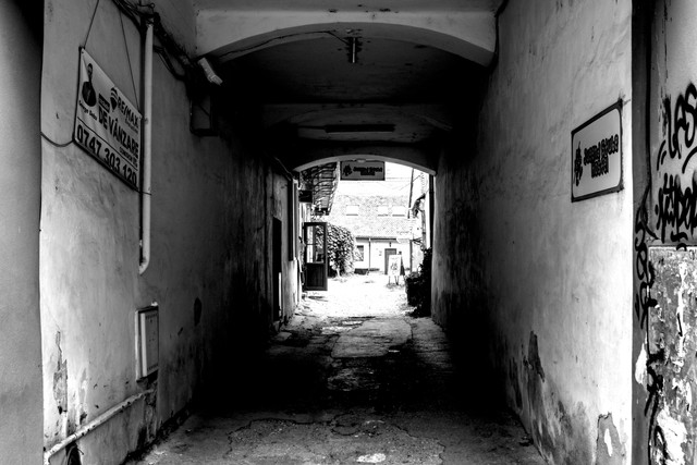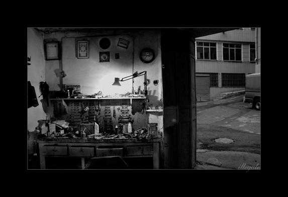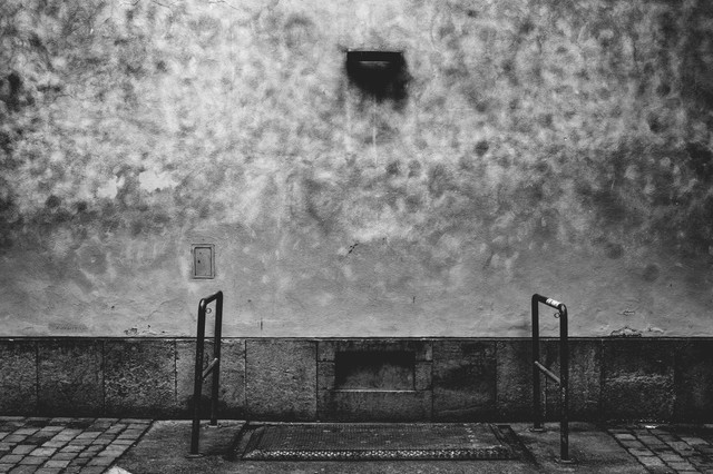 Nice black and white photo, though! Great use of orthogonals-new word of the day My only suggestion would be to cut the very right part out of the picture. To me it seems odd that it turns a corner and continues only for a 1/2 of an inch or so.