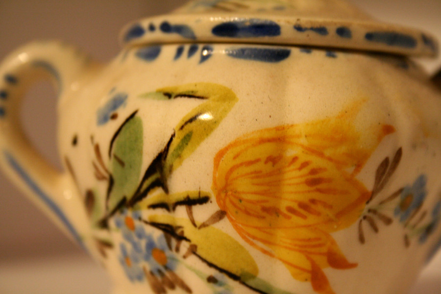 This is another in a series of still life photos I took. This is a little... I don't know what you call it... that is used to hold random buttons and safty pins. I have always thought the painting is so well done on this.Related content