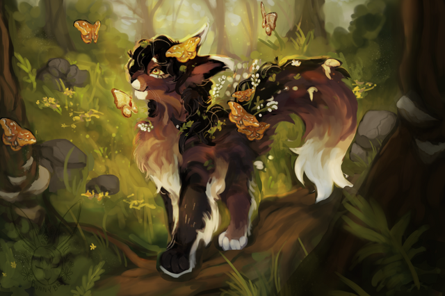 SO originally this was for a Warriors OC zine, but then I realized, Songstep is a WindClan warrior and... her being in an environment like this doesn't make a whole lotta sense, so I have completed a new piece which freed me up to post this one!!!this was the most ambitious nature background that I've ever done, and I'm like, really really pleased with it, Song's pose isn't all that interesting but I'm still really really proud of this piece <33