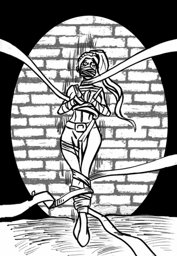 a quick sketch commission:" a sexy outfit And a sexy bondage pose with tight ropes on her. She always has bangs, Uneven preferably and pigtails always pigtails."Related content