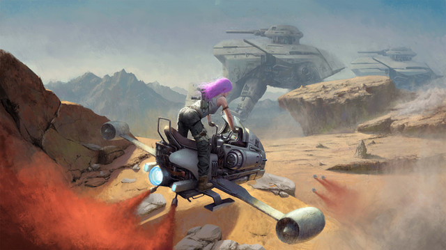 一個戰鬥中損壞的女性機器人,因受損嚴重所以進站維修,為半人半機器,刻畫目的希望表現機殼的光滑質感以及機組零件的複雜交錯和一個冷漠表情的女性。