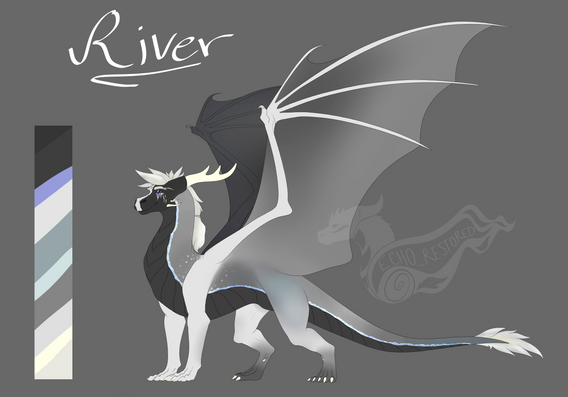 River is my new Dewwing character, and I absolutely love him!! So, I drew him up a reference (which took forever, but it was totally worth it).Dewwings are a closed species, created by Eldragonis!