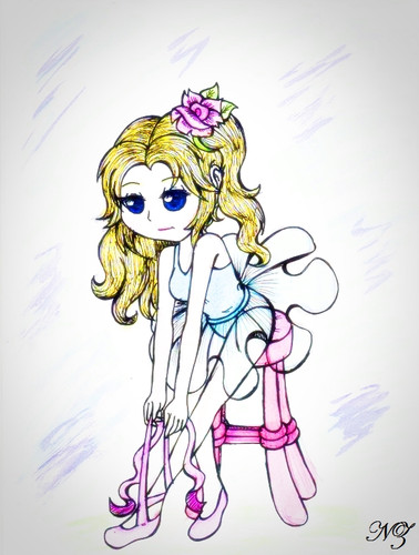 A drawing I did last year. It's suppose to be me, but I can't really stand like that XD Yes, I triedI thought I wouldn't colour it because the paper was green, but as you can see, I changed my mind XD