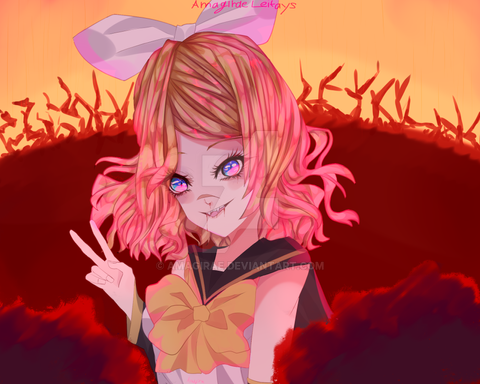 hi! this is a drawing inspired by "ghost rule" the song of DECO*27she is rin kagamine from "vocaloid"