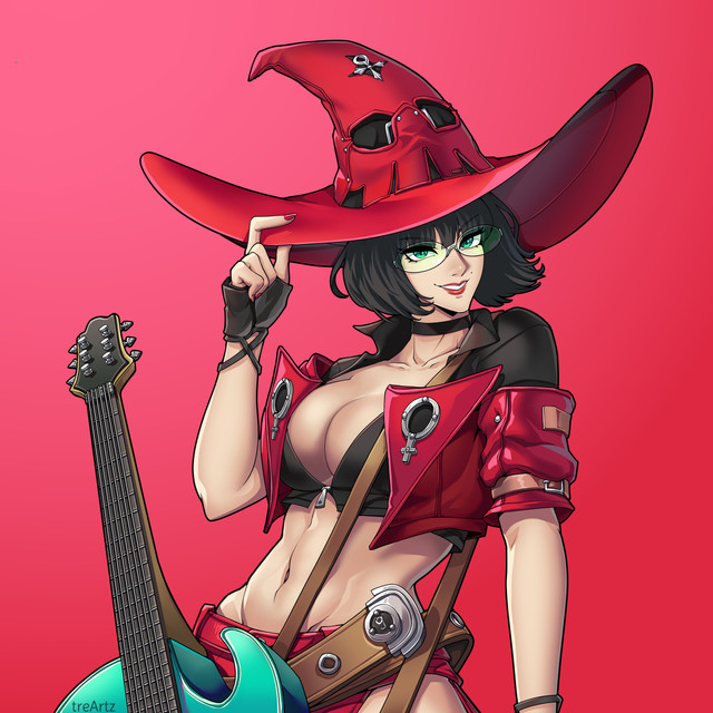 #character #face #fanart #fanartdigital #gg #girl #glasses #guiltygear #hat #music #pretty #profile #red #sexygirl #ggstrive #bitinglip #fightinggame #gameart #heavymetal #leather #sexy #videogamefanart #witch #witchhat #arcsystemworks #guiltygearstrive