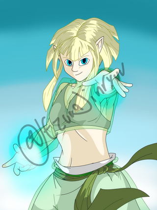 #animestyle #colorful #cutekawaii #elf #monstergirl #oc #smilinggirl #tshirt #1girl #longhairgirl #multicoloredeyes #looking_at_viewer #oppaiboobs #blondehair #darkelf #monochromatic #darkskinnedgirl