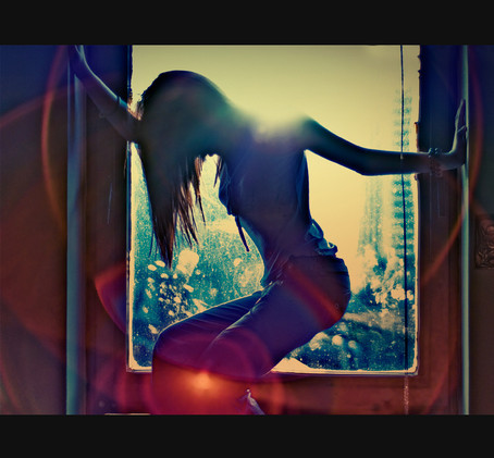 I love this photo. Nice job on the mirroring; at first I thought it was two models and two windows.