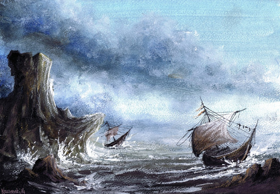 Lethal draw these amazing sky and I draw the water. We split the work on the rock (she right, I left). I like it for the second ever chalk pastel work. (Ago working with lethalnightmarez, I drawing never with chalk pastels)