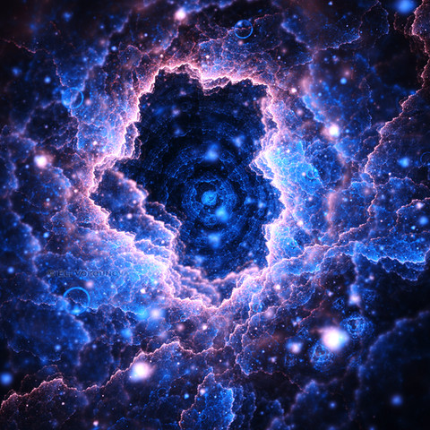 I absolutely adore the perspective of this fractal as it can be perceived in two different ways: It could be some ascending tunnel upwards to the sky/sun or an abyss tunnel towards Earth/mountain/ocean and its core. The core/sun is a good focus point and I am glad that you have not centered it (as sometimes artists do), so it has the vision of a long way to the focus point that the observer has to pass first.