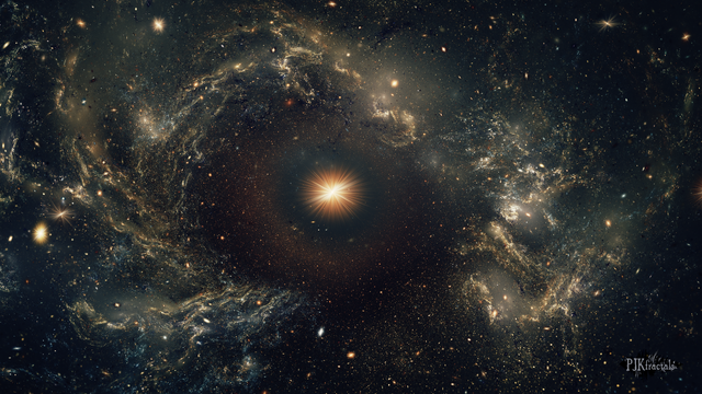 Next, there is the randomness of the smoke figures and stars that seem placed accidentally sometimes, but the viewer can still imagine how these structures form together to something meaningful, something that you as artist didnt force on the viewer, but rather is imagined by the viewer himself.