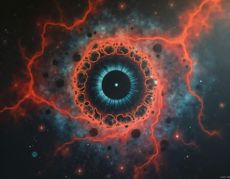 First of all, I love the composition of this piece, both colors and arrangement are exceptionally well-designed. The window created by the smoke ( I dont know, is it smoke?) plus the lonely bright star create a very dense atmosphere and also add a whole new plain to the picture.