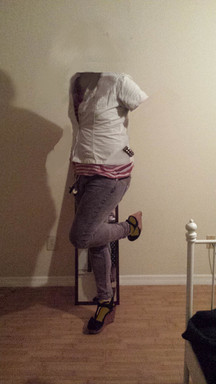 My lovely friend needed a little help to take off a pair of stockings and reveal her cute legs while her upper half was behind the camera.