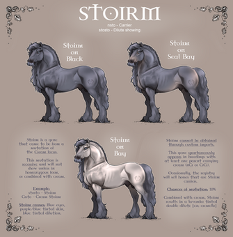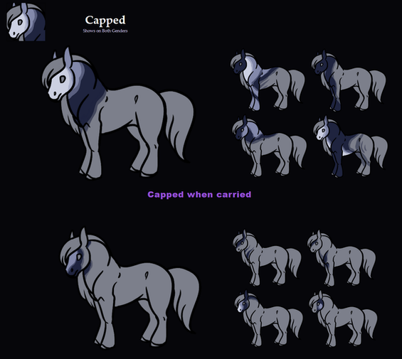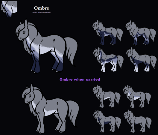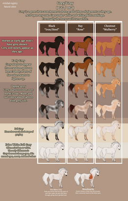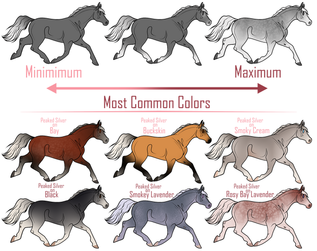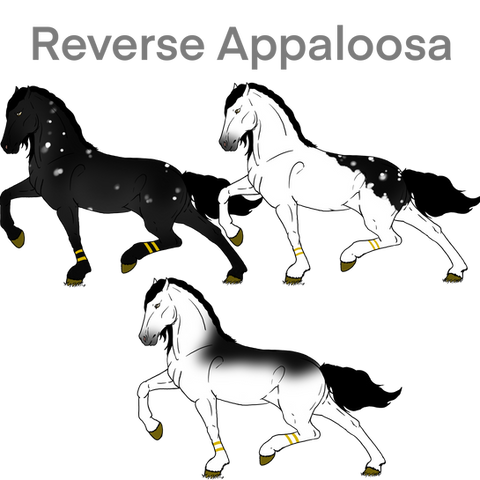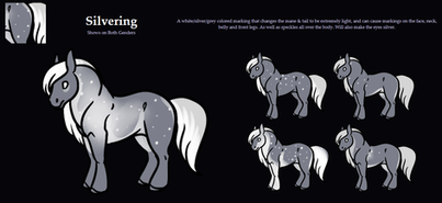 A white/silver/grey colored marking that changes the mane & tail to be extremely light, and can cause markings on the face, neck, belly and front legs. As well as speckles all over the body. Will also make the eyes silver. It causes that to happen when both shown or carried. When shown it will also change all black markings to silver/white.