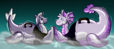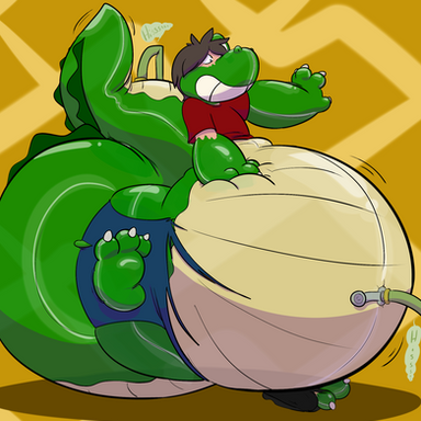 Commission for Mystic OrcaIf you are in my Laboratory's Hut you either swell big and fat thanks to a Kaiju Potion or you Inflate big and Round thanks to a Pooltoy Potion.