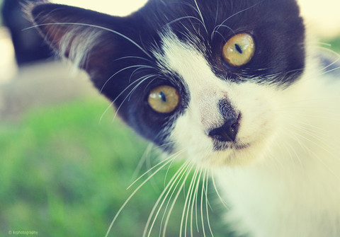 I will be honest... I don't like cats (purely because I have a VERY bad allergy to their fur and saliva lol so I always feel some bitterness towards them)... HOWEVER this cat is gorgeous and you have captured its beauty, curiosity and playfulness in a single stunning shot. The light and focus on the face bring out those stunning eyes... There is no way I coul feel bitter towards that beauty loL!