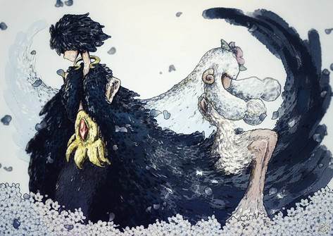 I due sopra sono Hana e il paparino caro dolce bello (si ho un debole per quel lupo/uomo se non si fosse capito <_<), abbozzati con china in modo randomico... ma la storia... il tutto... solo io ho pianto come una scema? ç_______ç
