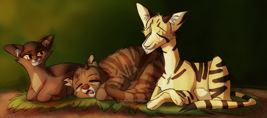 I completely forgot to submit Mapleleaf here, sorry about the wait.Mapleleaf is Thunderclan’s quiet and thoughtful medicine cat. Ever since day one, Mapleleaf had a strong connection to StarClan, receiving prophecies before she became 6 moons old. Thunderclan’s former medicine cat saw lots of potential in Mapleleaf, and before she became an apprentice, he tried to get her into herbs and being a medicine cat. Unfortunately, it didn’t work as expected, Mapleleaf hated herbs and dreamed of being a warrior. After moons of being an apprentice, she became a warrior. She served her clan for a few moons before her sister became ill with greencough during leaf bare. She did everything she could to help her, but all the catmint had been used on elders and kits. She stayed by the medicine cat’s side and begged for him to help her sister. After a week of her sister fighting greencough, she had joined the ranks of Starclan. The death of her sister convinced Mapleleaf to become a medicine cat to help those in need, she receives every ThunderClan prophecy from her sister and serves for her clan.