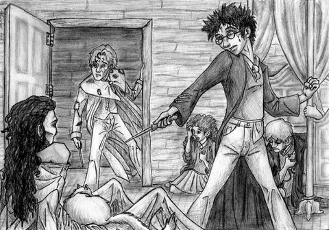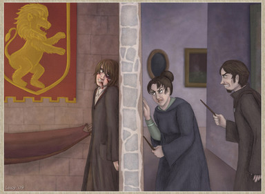 nice clothing folds & architectural details, and I like how the group just stops cold, like Snape's a brick wall of death or something