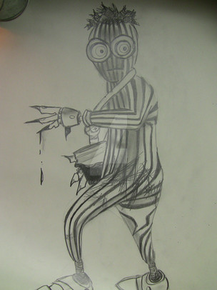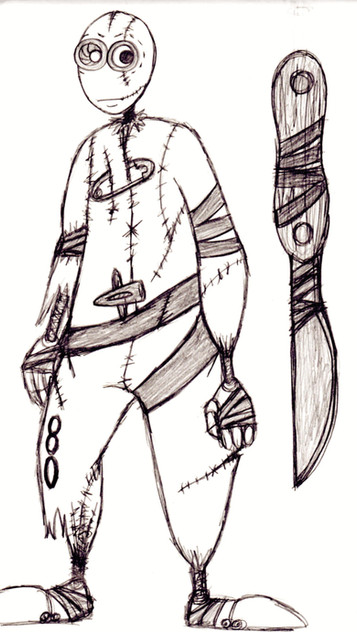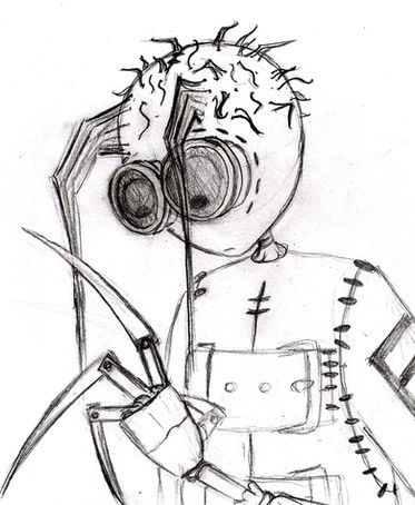 Life in the wastes have made him suspicious of anything or anyone so he takes to carrying two wepons, a scalpel, and an axe made from a utility knife blade.