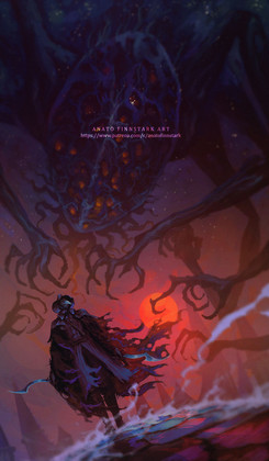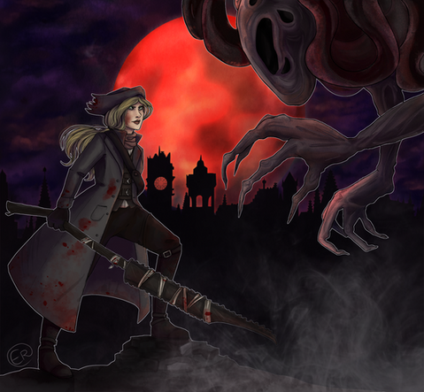 #asian #blood #cthulhu #dark #demon #digital #fanart #god #gods #hair #handsome #hero #hunter #male #moon #bloodborne #patreon #characterdesign #digitalpainting #bloodbornefanart