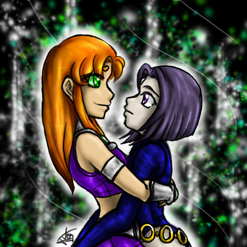 #comics #dc #dccomics #pinup #raven #starfire #teentitans #yuri #dcfanart #valentineexchange2018