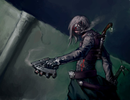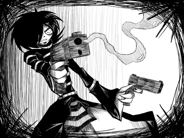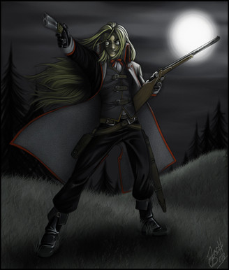 From my old account.A character from the Hellsing comics. Did as a request... I don't feel my usual realistic style blends so well with a more cartoonish comic, but she liked it. I personally only like the gun