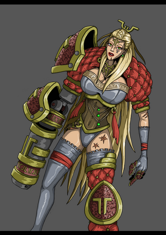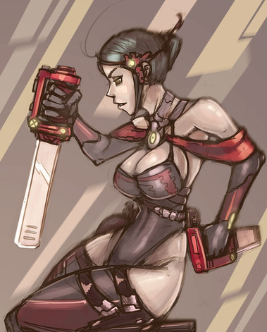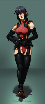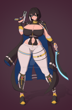 With Set's design I wanted to make her high tech then the others and to make her outfit "slightly" more grounded haha. I thought that making her colours share some similar themes would tie her to her former organisation too.
