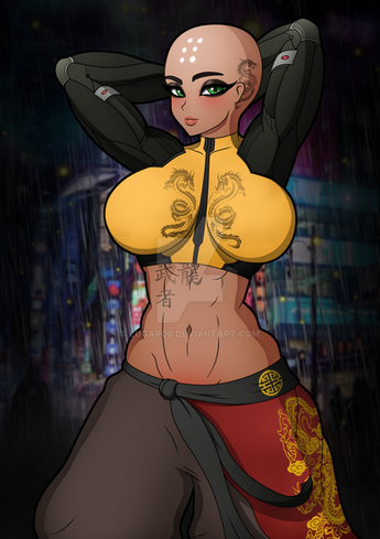 Set is outfitted with a wide variety of typical military cybernetic enhancements, but what sets her apart is her proficiency with counter intelligence quick hacks. When entering a battlefield she overloads enemy surveillance and causes wide spread panic among the combatants with false intel. Making them see soldiers everywhere.