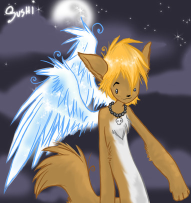 bueno apesar de sus alas en la cabeza si su fuersa es luz ^ w ^