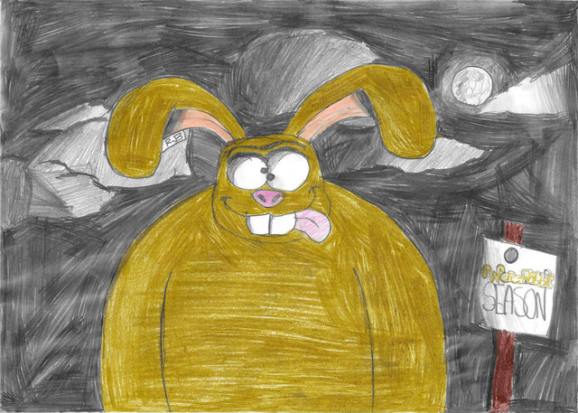 A fansketch of the Aardman franchise; this one is the Were-Rabbit from Wallace and Gromit: the Curse of the Were-Rabbit. Wallace and Gromit experimented on rabbits to change their vegetable-craving nature, but everything goes awry as a simple kink in the machine made Wallace and a rabbit transfer DNA into each other. At night, when the moon appears at night, Wallace transforms into the Were-Rabbit.The Were-Rabbit belongs to Aardman.