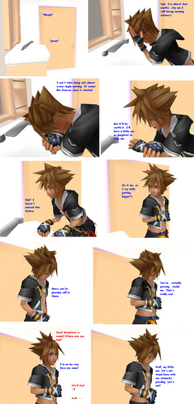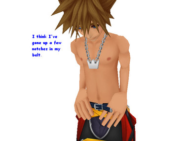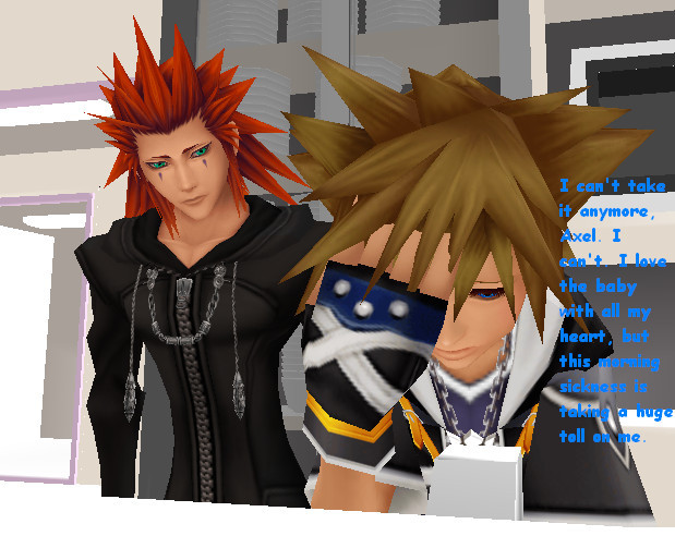 Axel...when Sora's pissed off, you never want to poke him, especially since he allows no one to touch the baby, even if he was in a good mood.....x3Sora model (c) Square-Enix & Disney