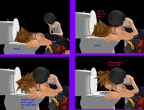 Sora: What do ya think I'm doing between meals? I sneak some...snacks.